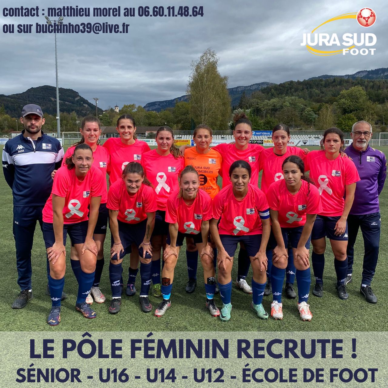 Le pôle féminin recrute dans toutes ses catégories. Si tu souhaites pratiquer le foot dans un club dynamique où compétition, convivialité et plaisir sont au rendez-vous, c'est le moment de nous rejoindre !