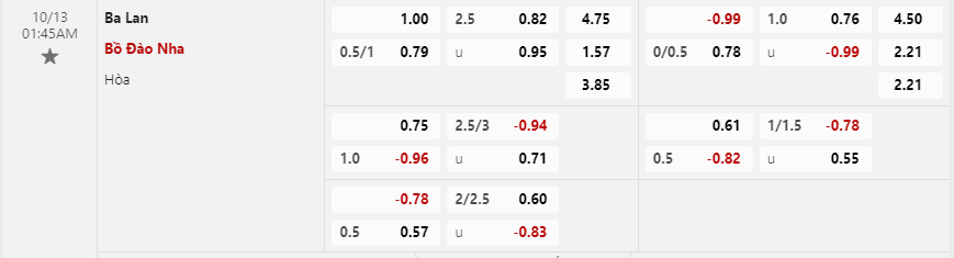 Tỷ lệ kèo Ba Lan vs Bồ Đào Nha