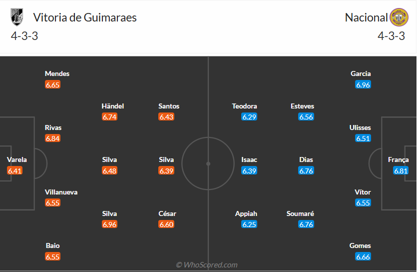 Guimaraes đang đứng thứ 6 trên bảng xếp hạng, so với vị tí thứ 5 mùa trước thì rõ ràng họ chưa thể hài lòng với vị trí hiện tại. Việc chỉ thắng 2 trong 6 vòng gần nhất là nguyên nhân đội bóng của HLV Rui Borges không thể có vị trí tốt hơn. Các cầu thủ Guimaraes cần chiến thắng ở vòng 15 này và chỉ phải gặp đội bóng yếu Nacional là cơ hội tốt cho họ làm điều đó. Nhiều khả năng Guimaraes chấm dứt chuỗi 2 trận không thắng của mình và có 3 điểm thuyết phục trước Nacional.