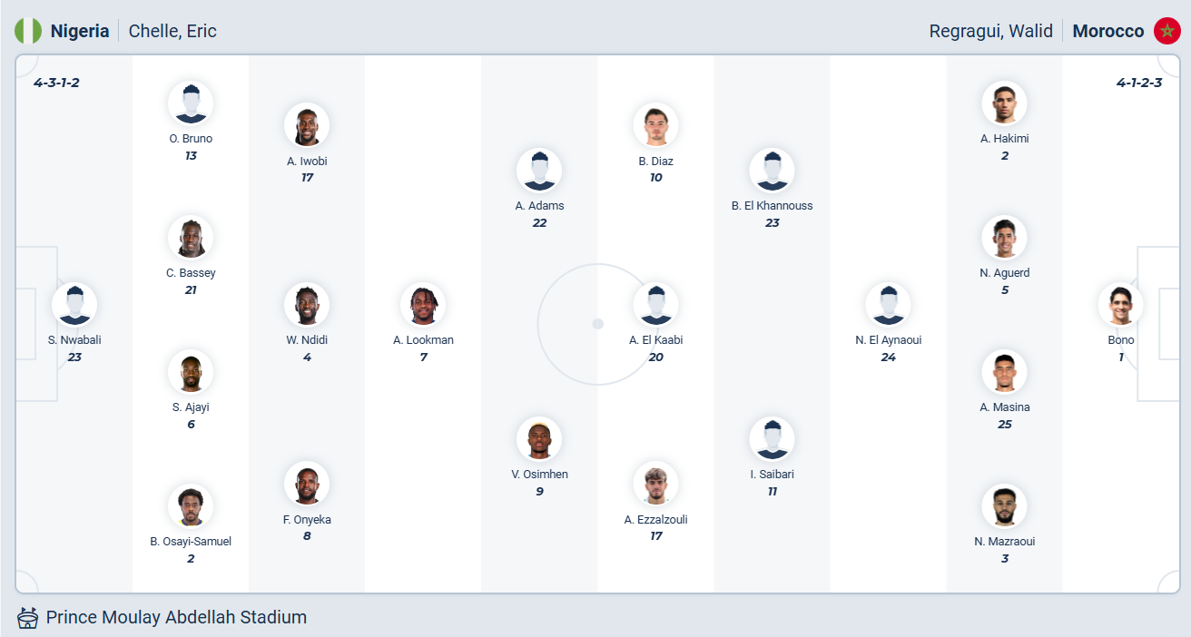Nếu xét về những ngôi sao trong đội hình thì chính Morocco ở thời điểm hiện tại lại nhiều hơn Nigeria, họ có các cầu thủ đang đá cho Man United và PSG, những đội bóng nổi tiếng trên toàn thế giới. Ngoài ra những cầu thủ khách trong đội hình Morocco cũng rất chất lượng, việc họ vào đến bán kết World Cup 2022 cho thấy điều đó. Được đá sân nhà tại AFCON lần này, các cầu thủ Morocco muốn giành chức vô địch và họ cần thắng Nigeria trong trận bán kết để tiến gần đến mục tiêu đó. Với đội hình được đánh giá nhỉnh hơn thì nhiều khả năng Morocco sẽ có được điều mình cần.