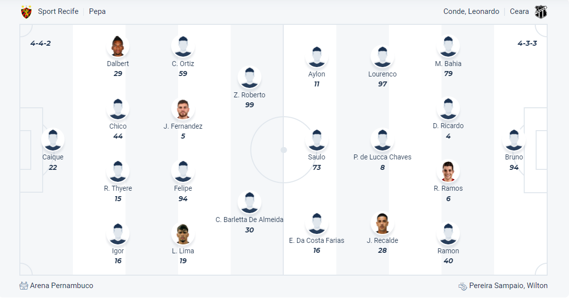 Sport Recife đứng thứ 7 tại Serie B mùa trước, họ đặt mục tiêu làm tốt hơn mùa giải này để giành vé thăng hạng. Thầy trò HLV Sport Recife đang thể hiện khá tốt điều đó khi tạm thời đứng thứ tư trên bảng xếp hạng. Nếu giữ được vị trí này thì Sport Recife sẽ thăng hạng và trong các trận đấu còn lại của mùa giải họ sẽ chơi với quyết tâm cao nhất để lên chơi tại Serie A mùa tới. Chính vì vậy khi đón tiếp Ceara trên sân nhà thì 3 điểm là điều duy nhất Sport Recife hướng đến, trước đối thủ yếu hơn thì nhiều khả năng đội chủ nhà sẽ có được 3 điểm.