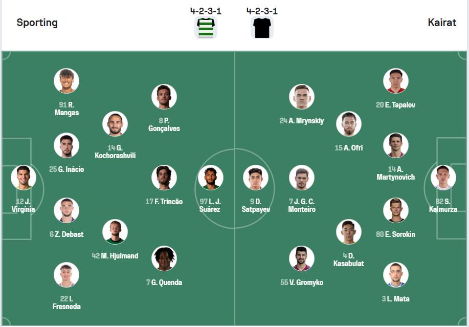 Kairat là đội bóng của Kazakhstan, họ có lần đầu tiên vượt qua vòng sơ loại Champions League và đây là thành tích rất đáng tự hào với đội bóng của quốc gia có lãnh thổ thuộc châu Á này. Rõ ràng với một đội như Kairat thì các đối thủ ở Champions League mạnh hơn họ rất nhiều nên họ không thể đặt mục tiêu cao ở vòng League Phase, rất cả những gì đội bóng này mong muốn chỉ là những điểm số khi đối đầu với các đội bóng hàng đầu. Đến làm khách trên sân của đội bóng mạnh như Sporting Lisbon là thử thách rất khó khăn và nhiều khả năng Kairat sẽ không thể có điểm ra về.