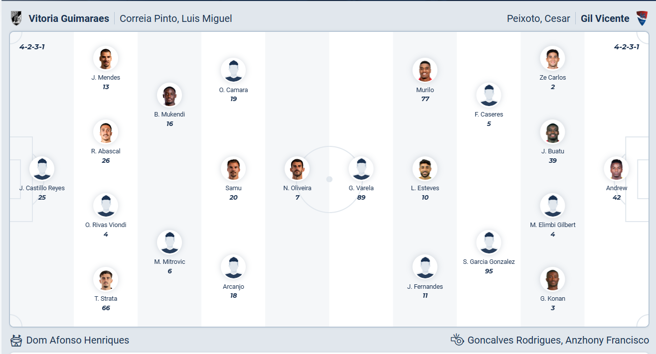 Gil Vicente đứng thứ 13 mùa giải trước, rõ ràng họ không phải đội bóng mạnh của giải Bồ Đào Nha. Nhưng khác với Vitoria Guimaraes, các cầu thủ Gil Vicente đang chơi tốt ở mùa giải này khi đứng thứ tư sau 13 vòng đấu, tuy nhiên họ đã có dấu hiệu chững lại khi không thể thắng ở 2 vòng gần nhất và cần tiếp tục chiến thắng nếu không muốn tụt xuống vị trí thấp hơn trên bảng xếp hạng. Tuy nhiên đến làm khách trên sân Vitoria Guimaraes không phải trận đấu dễ dàng, nhiều khả năng Gil Vicente sẽ không thể có điểm ra về.